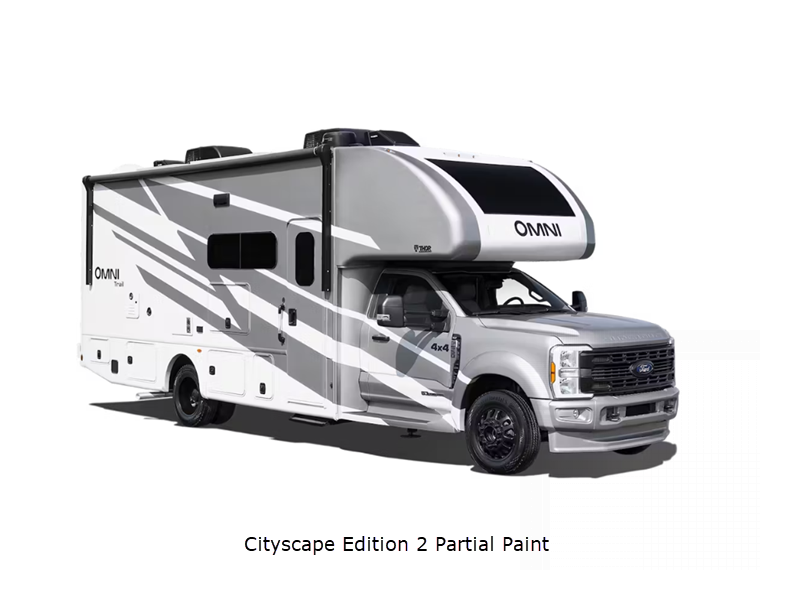 Sleeps 4 Slides 1 Length 30 ft 4 in Ext Width 8 ft 3 in Ext Height 12 ft 6 in Int Height 7 ft Interior Color Overlook, Morning Breeze Exterior Color Cityscape Edition ll Partial Paint. Clear Lake ll, Monterey Bay ll, Santa Ana Wind ll Full Body Paint Choices Hitch Weight 12000 lbs GVWR 19500 lbs Fresh Water Capacity 65 gals Grey Water Capacity 50 gals Black Water Capacity 50 gals Furnace BTU 30000 btu Generator Onan RV QD 6,000 Diesel Fuel Type Diesel Engine Power Stroke 4x4 Turbo V8 Chassis Ford F550 Horsepower 330 hp Fuel Capacity 66.5 gals Wheelbase 205 in Number Of Bunks 1 Available Beds Murphy Refrigerator Type Residential Cooktop Burners 3 Shower Size 30" x 36" Number of Awnings 1 LP Tank Capacity 68.2 lbs Water Heater Type Tankless Basement Storage 54 cu. ft. TV Info Smart TV; LR 40", Entry Door 40", Ext. 32" Awning Info 18' Power with LED Lights Gross Combined Weight 43000 lbs Shower Type Standard Electrical Service 50 amp Solar Wattage 500 watts Similar Floorplans
